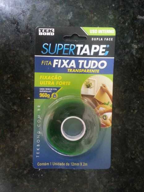 - Fita dupla face - há diversas no mercado, algumas utilizam como suporte gel, espuma, fita de acetato..., utilizei una tem gel como suporte.