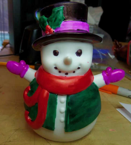 Usar Sharpies para el carácter del color. Utilice una punta ultra fina para obtener puntos y la punta del pincel para cubrir una amplia zona. Mientras para colorear, deje que la tinta seque antes de colorear un área nueva. De lo contrario, la tinta se frota en las manos y posiblemente en otras áreas del personaje de vinilo.