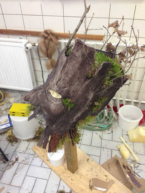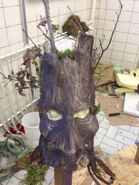 Utilizamos una lata de aerosol a la cartilla de la máscara con una capa marrón. Las bolas de ojo se realizaron con un sistema de aerógrafo más detallada. Mejor hacer el cebado fuera!