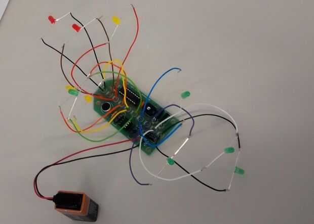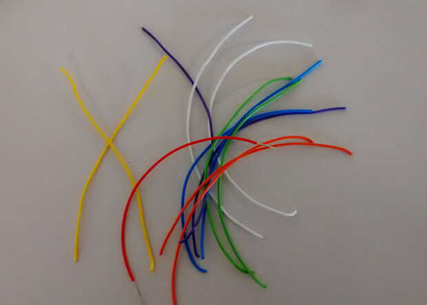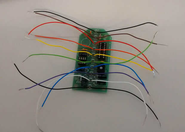 Se necesita 20 longitudes de cable. Estos son soldados al circuito en los puntos donde normalmente se conectaría los LEDs. He utilizado una gran variedad de colores para hacerlo simper para identificar pares de cables.