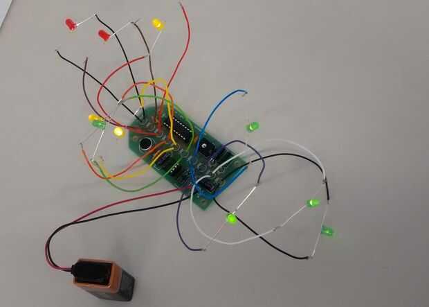 Libremente conectados los LEDs y conectado a la batería, para verificar si el circuito funciona. (Lo hizo)!