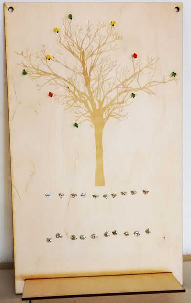 -Un corte madera colgando de la pared que tenía un estante para sostener el teléfono. Usé alambre y soldadura alrededor de la parte trasera para conectar los LEDs y botones automáticos