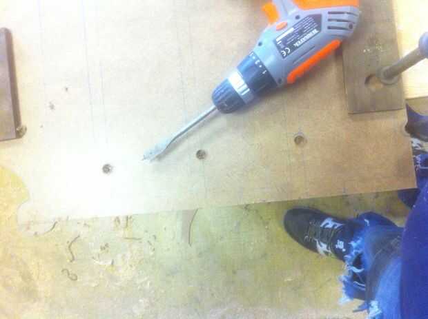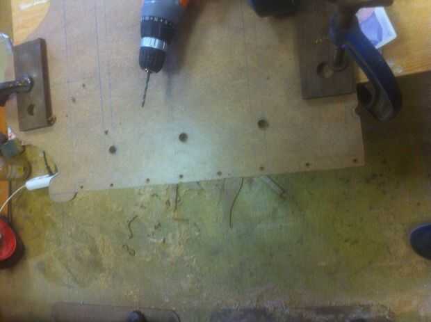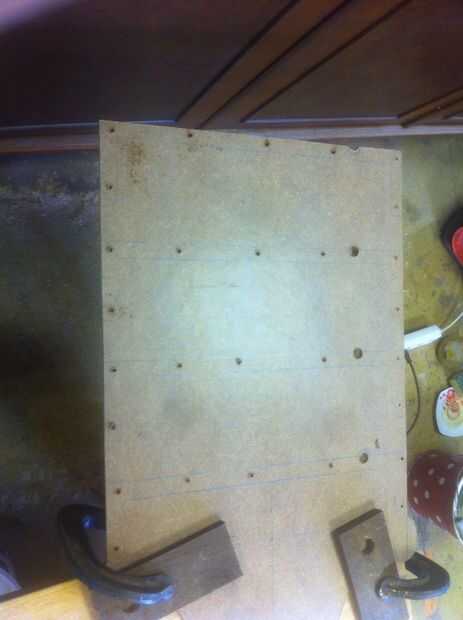 Ahora usar la broca de 10mm donde los canales hacia la parte posterior de sus estantes (esto para llevar la luz a través). Y la broca de 2 mm perforar los orificios para los tornillos dentro de las marcas de seguimiento realizadas anteriormente:). Luego darle una de arena...