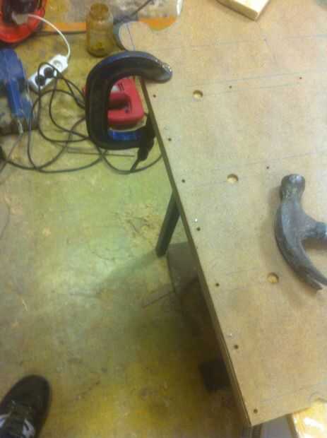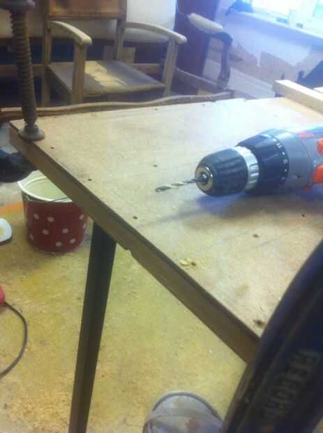 Mida algunas porras para el lado entonces darles una tajada, pone pegamento en em la abrazadera y pone algunos clavos en... Luego rehacer sus agujeros...