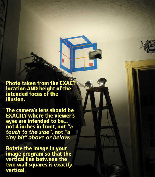 Paso 6: Fotografiar el pegado pared desde el exacto punto que escogió para ser "Foco" de la ilusión