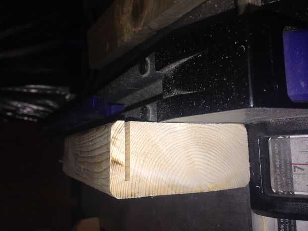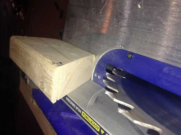 Corte el bloque de señuelo por la figura. Variado la altura de la hoja de Sierra de mesa para retirar la madera interna.