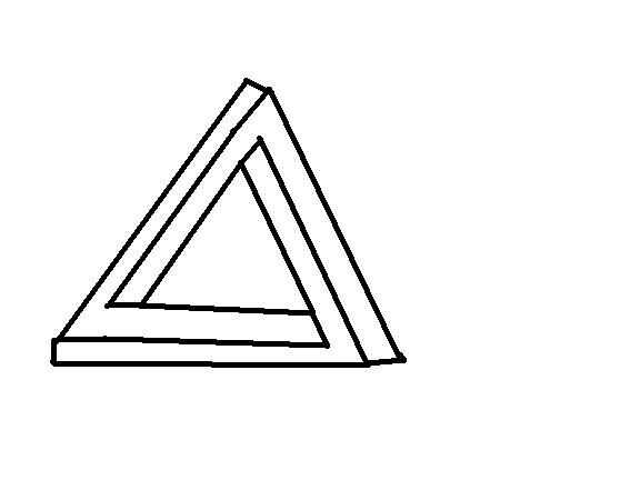 Esta es una versión modificada del triángulo de Penrose "Imposible" que es un interesante ejemplo de cómo el cerebro puede ser engañado. La principal diferencia de esta versión es el uso de hardware para simular las conexiones del lado del trián