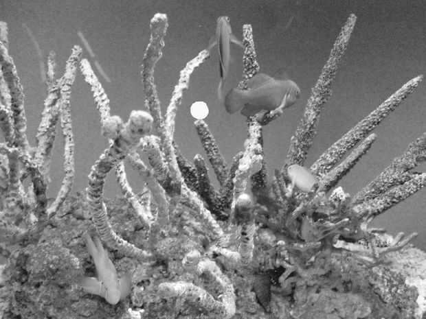 Si decides añadir un punto en las fotos, uso una herramienta de dibujo en el software para hacer un pequeño blanco círculo (ver imagen). Obviamente cuando invertir la foto original de color, este punto será negro. Es lo que quieres.