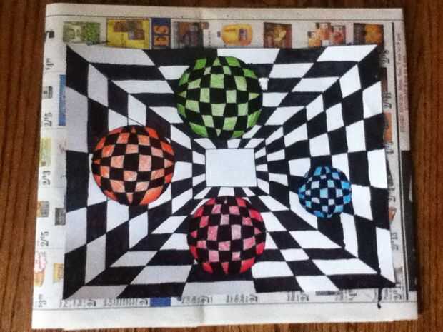 Esto es una diversión y de duro y fácil de ilusión óptica. Mi profesor de arte tenía mi clase y hacerlo cuando ella lo vio en la Feria de arte de este manera de Lincoln. Pensé que era genial y decidió hacer un instructable. Recuerde que en trazar las líneas ligeramente.