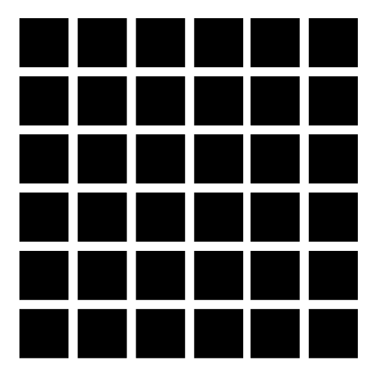 esta ilusión óptica es una variante de la anterior ilusión óptica con los fantasmas grises que aparecen en las intersecciones de la rejilla negra.Todavía tenemos una rejilla negro aquí, pero ahora las líneas son grises y hay círculos blancos en las i