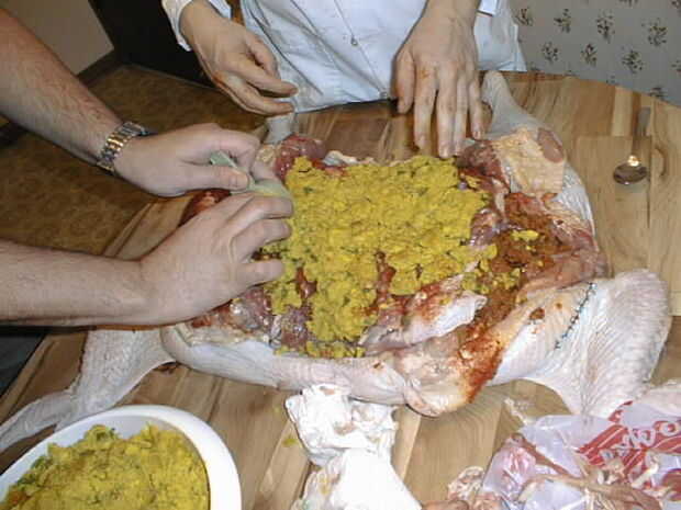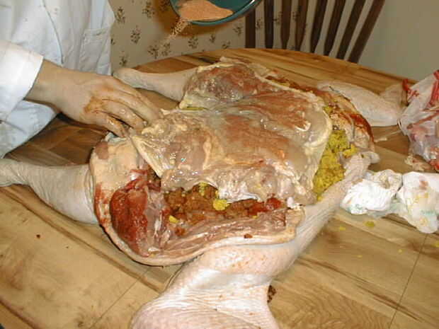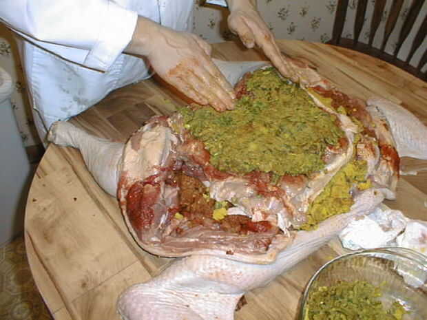 Por último terminar con el pollo y repetir los pasos anteriores. En cada etapa, usted tendrá menos especias y pequeñas cantidades de aderezo.