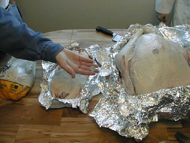 Teníamos un pavo de 30 lb (comprado por $5 en un especial de la acción de gracias--recuerda que los pavos pueden ser guardados en el congelador por hasta un año!) por lo que ampliar el pato a 8 libras y el pollo de 4 libras.