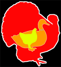 1. el pavo va ser deshuesado completamente excepto la punta de cada pata y las dos primeras articulaciones de cada ala. El pato y el pollo serán completamente deshuesados. Cada pájaro será efectivamente un pedazo grande de carne.