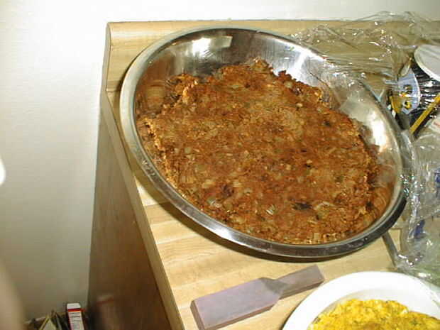 Vierta el relleno en una hornada de 8 x 8 pulgadas engrasado sin plato. Hornear durante unos 45 minutos, o hasta que se doren en la parte superior. De vez en cuando remover y desechar la parte inferior de la cacerola cada 15 minutos.