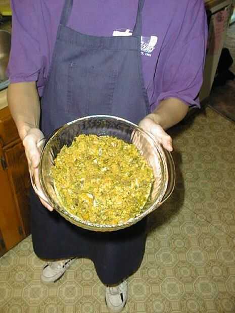 Continuar la cocción unos 10 minutos, revolviendo ocasionalmente. Preparación mezcle la mezcla de aderezo restante y suficiente pan rallado para hacer un húmedo pero no líquida. Revolver en castañas y los champiñones y cocinar por otro minuto. Retirar del fuego. Preparación de la cuchara en una bandeja de horno no engrasada y hornear durante 30 minutos. Retirar del horno, deseche las hojas de la bahía y revolver con la mantequilla y el restante 1/4 de taza cada cebolla verde y perejil.
