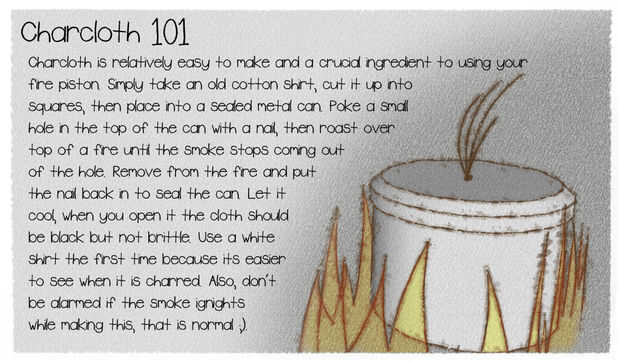 Hacer un pistón de fuego sin tener paño char te hará enloquecer, lo más probable es que tendrás un pistón de trabajo pero no sabe porque su uso la yesca mal. Hacer el char paño primero!!!!!!