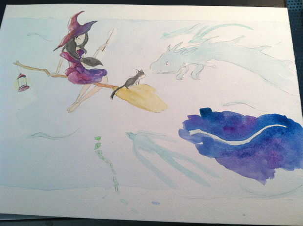Ilustrando una bruja y su gato con acuarelas (10 / 14 paso)