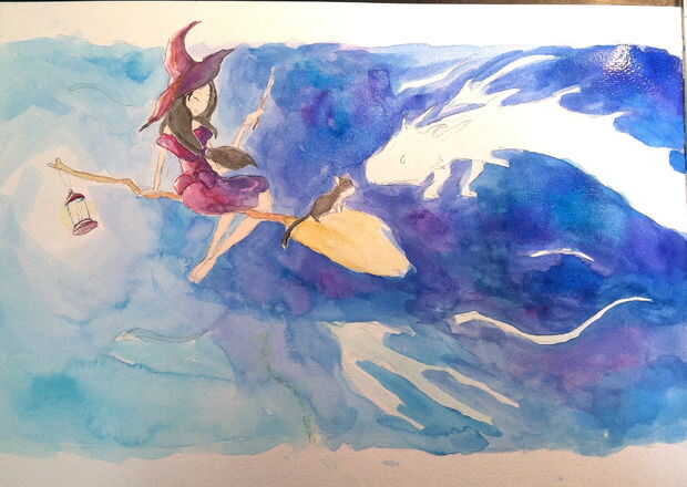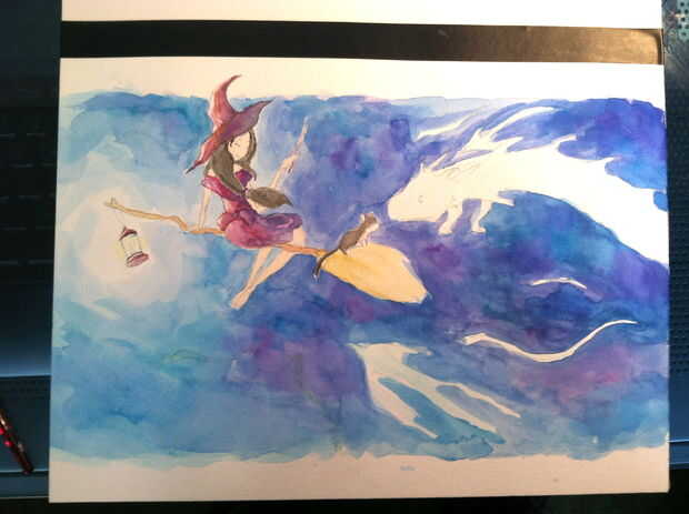 Ilustrando una bruja y su gato con acuarelas (11 / 14 paso)