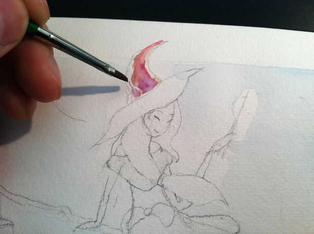 Ilustrando una bruja y su gato con acuarelas (3 / 14 paso)