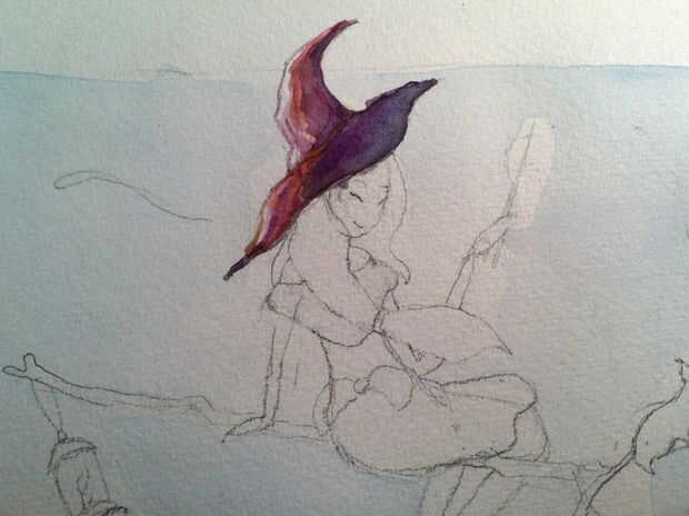 Ilustrando una bruja y su gato con acuarelas (4 / 14 paso)