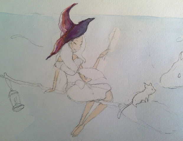 Ilustrando una bruja y su gato con acuarelas (5 / 14 paso)