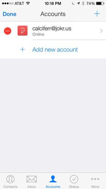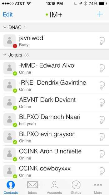 Ahora debería ver esto. Su nombre de usuario con él diciendo conectado a continuación. Si nos remontamos a contactos verá un montón de ppl al azar.