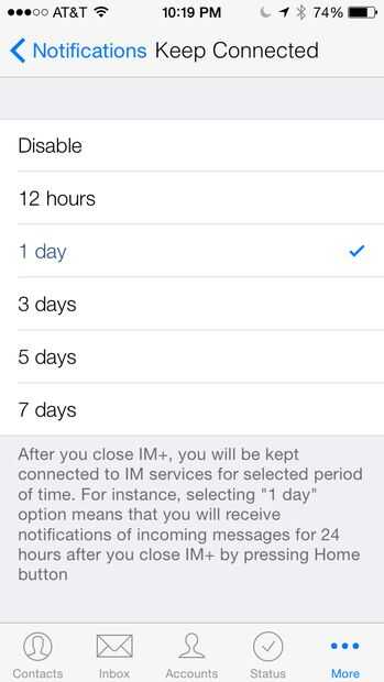 Haga clic en más y luego configuración y ajustar la hora de "seguir conectado". Sólo póngalo en 7 días. Esto te mantendrá conectado durante 7 días a la vez.