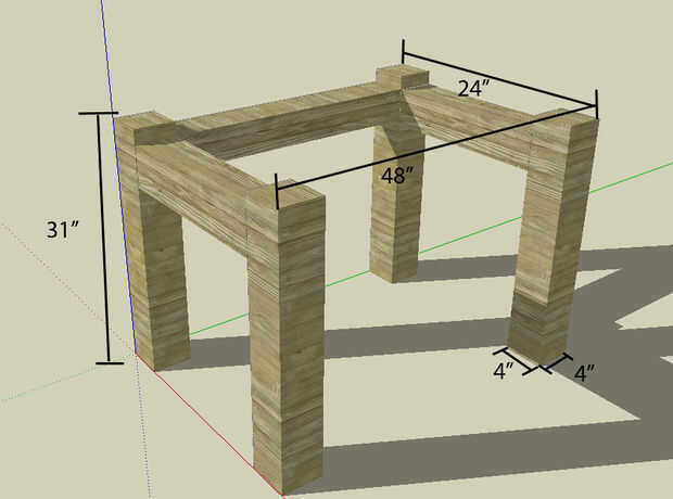 Este diseño es para un labio flotante en la parte delantera de la mesa, por lo tanto, sólo tener una viga transversal más larga.