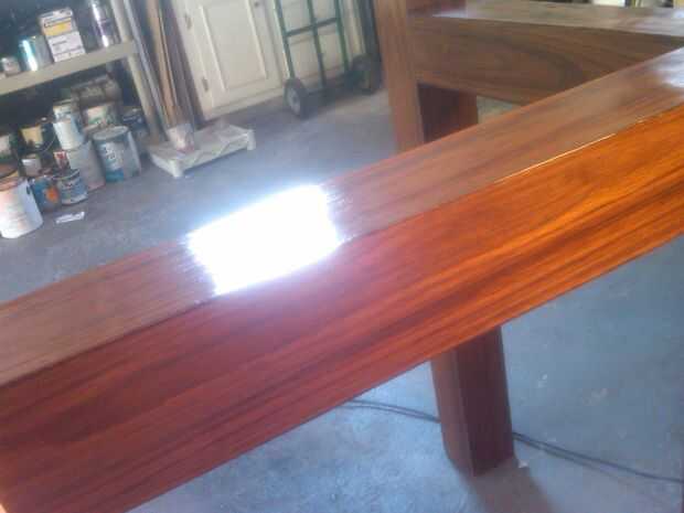Escribir 5 capas del poliuretano. En la capa final, realmente pasé una buena cantidad de tiempo frotando hacia abajo con la lana de acero... Quería tener un brillo muy bonito.
