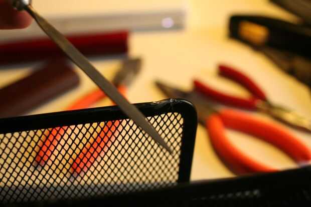 Un pequeño archivo trabajo suaviza el los lugares donde las soldaduras se rasgaron.