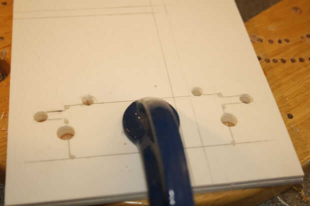 - Una vez que tienes los puntos claves, deshacer su sierra de marquetería y pasarlo a través de uno de los agujeros, luego corte a lo largo de sus líneas.