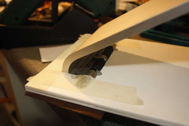 - Una vez tengas la base encajada como usted quiere, cubrir la espalda y los huecos con cinta de enmascarar, esto detendrá la cola escape hacia la parte posterior