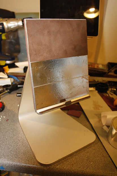 - He añadido un pequeño borde de metal en el centro de la parte inferior, esto deja la parte inferior de la iPad deslizarse fuera de la parte delantera, merece la pena hacer, no parece tan bonito, pero seguro que da el iPad una sujeción más firme.