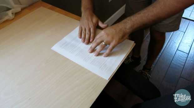 Presione el papel de la etiqueta a la madera con la imagen hacia abajo. Use sus manos para asegurarse de que todos los de la tinta transferida. No utilice una tarjeta o un objeto duro, lo pone las líneas en la tinta.