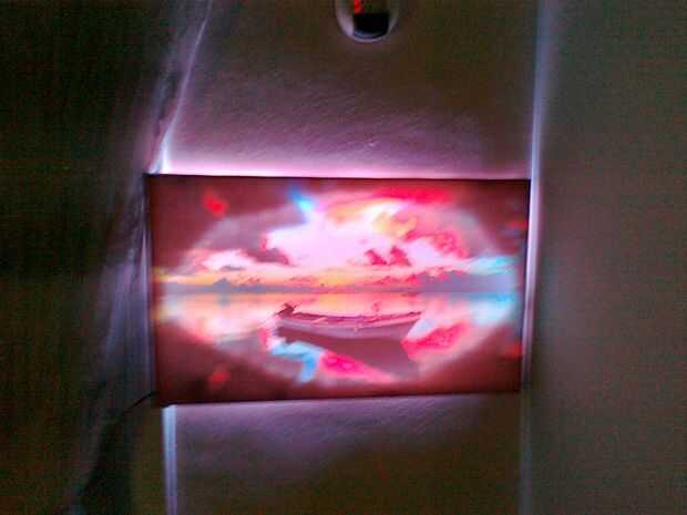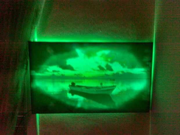 Tenía una tira de LED huérfana sólo colocación alrededor y tenía curiosidad si la luz se veía a través de la impresión de la lona.