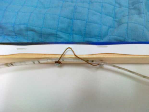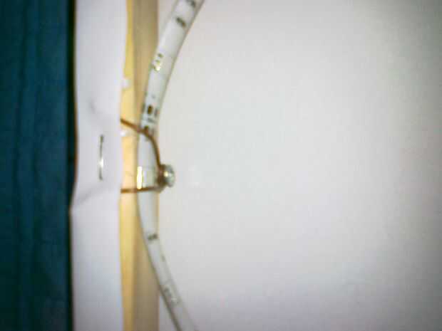 Cuadro 6. Usé dos tornillos adicionales en la parte superior del marco para que la tira de LED crea una forma ovalada. Puede omitir este paso pero sin la luz va a ser la forma de un rombo y no oval, que parece no tan buena en mi opinión.