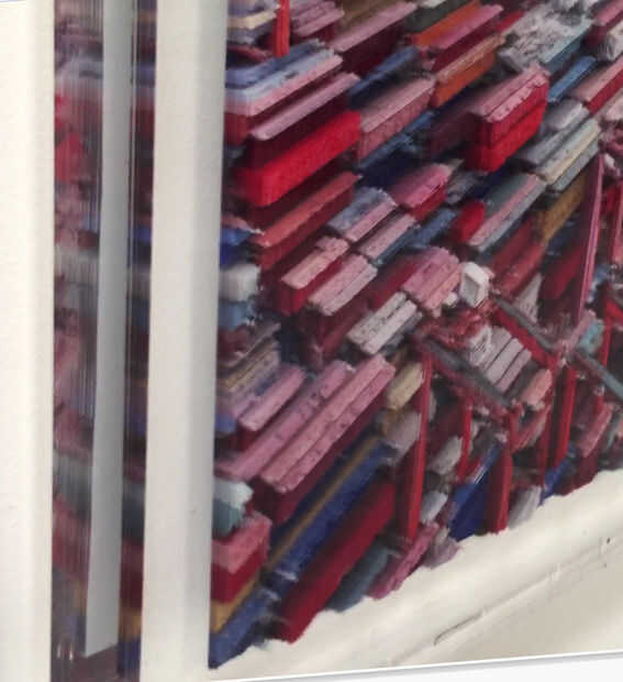Las dieciséis láminas de acrílico se colocaron en una caja de acrílico de apretado del agua (medida por grifo plástico). Para reducir la visibilidad de las hojas, el aceite mineral fue vertido en la caja. El aceite mineral tiene un índice de refracción muy cerca de acrílico (1.49 versus 1.47), que significa que se dobla la luz en casi la misma manera, haciendo la caja, hojas y aceite aparecen como un cubo sólido.