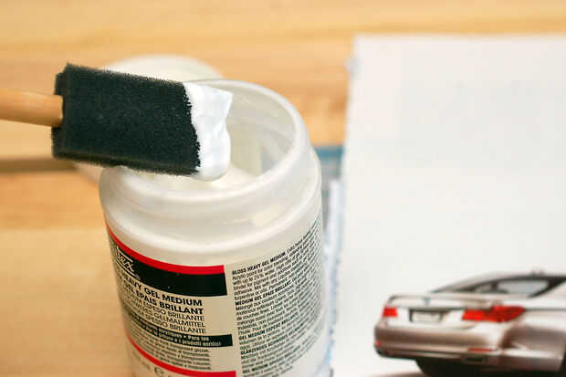 Aplique una capa delgada del medio gel acrílico con el pincel, teniendo cuidado de mantener trazos de pincel suave y uniforme (a menos que usted realmente quiere construir los trazos de pincel y que vienen a través en el producto final).