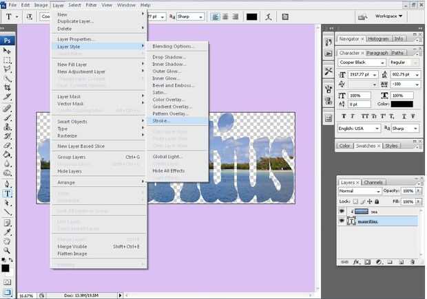 Haga clic en el icono estilo de capa en la parte inferior del Panel capas y seleccione trazo.