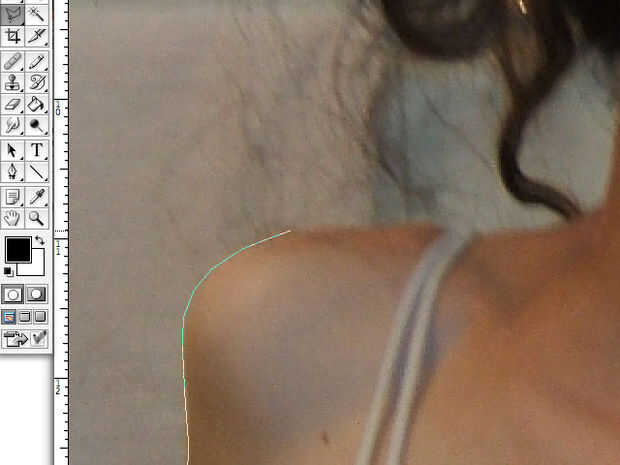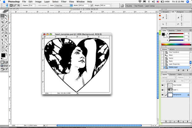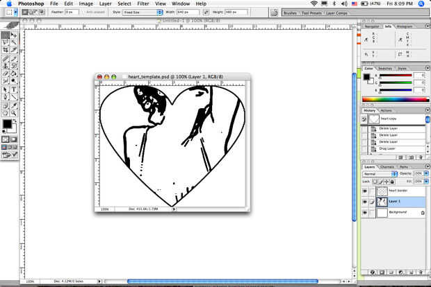 Recortar la imagen utilizando la herramienta lazo poligonal (ver imagen secundaria). Copiar la selección con la herramienta lazo poligonal (Editar--> Copiar) y péguelo en su imagen de heart_template.psd (heart_template.psd select y luego editar--> pegar).