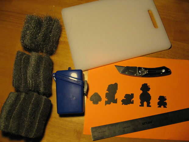 También tuve la idea de la máscara de una porción de plástico para mantener un diseño allí. Yo soy de ninguna manera buena en dibujo libre, así que fui con el viejo recurso seguro (y algo cliché) imágenes de 80 caracteres video del juego. No tenía pista cómo saldría, así que esto es mucho un experimento en el AXIS real, así como el instructivo (este es mi primer intento en uno)