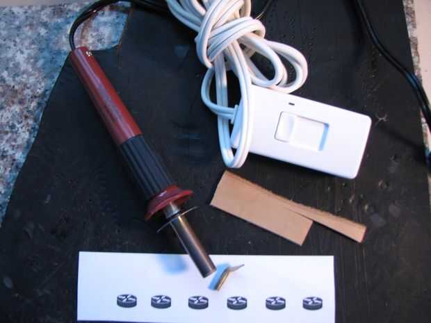 Ya que el kit es para quemar la madera, podría producir demasiado calor para el cuero. He utilizado una luz barata atenuación cable así podía controlar cuánta energía va a la plancha. Encontré me la cantidad de calor colocando el atenuador en da a mitad de camino.