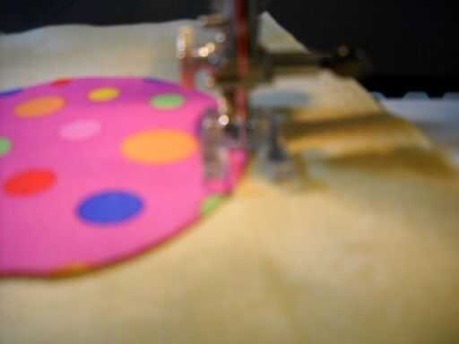 Prendió su máquina de coser de zig-zag con ancho entre 0,5 y 1,0 de puntada. La idea aquí es que tus puntadas de máquina apenas perceptible y dar a la pieza la apariencia de aplicaciones de la mano. Su puntada debe ir apenas dentro de la pieza en "zig" y luego ir a la derecha en el borde de la pieza, sólo en la tela de fondo, en el "zag". Practique en trozos hasta que la máquina se ajusta correctamente ya que todas las máquinas son diferentes.