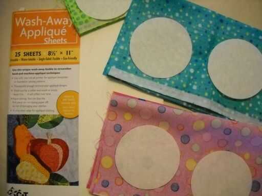 El estabilizador de appliqué que utilizo es fusible para sólo tener que presione las piezas de estabilizador en el lado equivocado de mi telas con una plancha. Si el estabilizador no es fusible, utilice un palillo del pegamento de tela para sujetar las piezas de estabilizador al revés de las telas. Corte alrededor de cada pieza de estabilizador, dejando una escasa ¼" de tela alrededor de cada pieza. Clip sólo tela cualquiera dentro de las curvas y divots profundos.