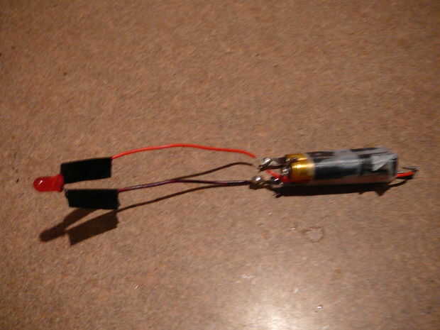 utilizar un rotulador y un cable negro (alrededor de 3 in) de color y otro rojo. soldar un extremo negro para el interruptor de láminas (+) y el otro extremo a la parte del cátodo del LED (el lado con el cable corto) o plana. soldar un extremo rojo a la franja de metal (-) y el otro extremo en el lado del ánodo del LED.