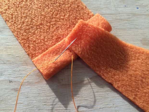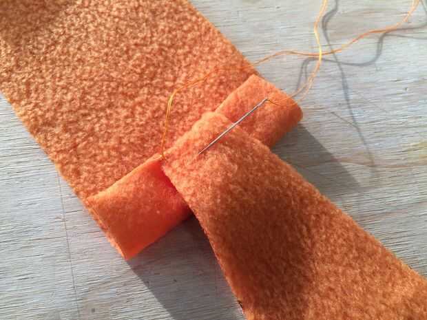 Con hilo de algodón, coser la cola en la parte inferior de la bufanda, apenas sobre el imán es buena.