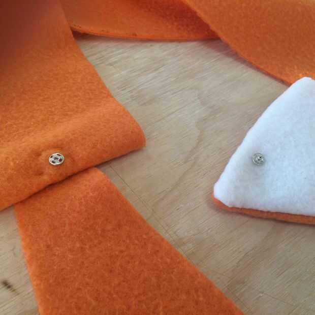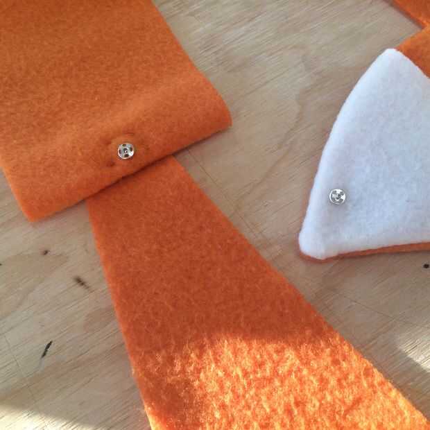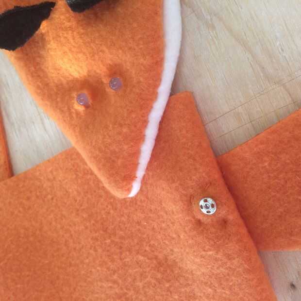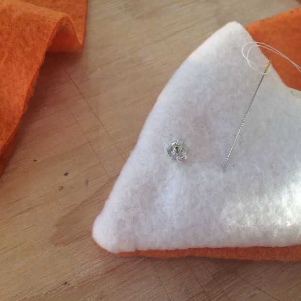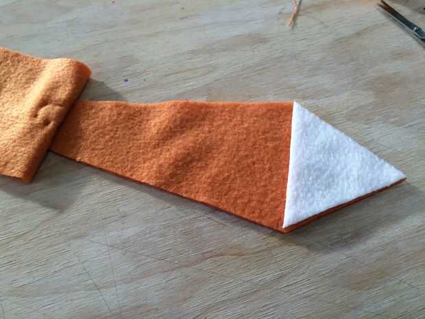Si un zorro, tomar la pieza de triángulo blanco y pegamento o coser a la parte superior de la parte trasera.