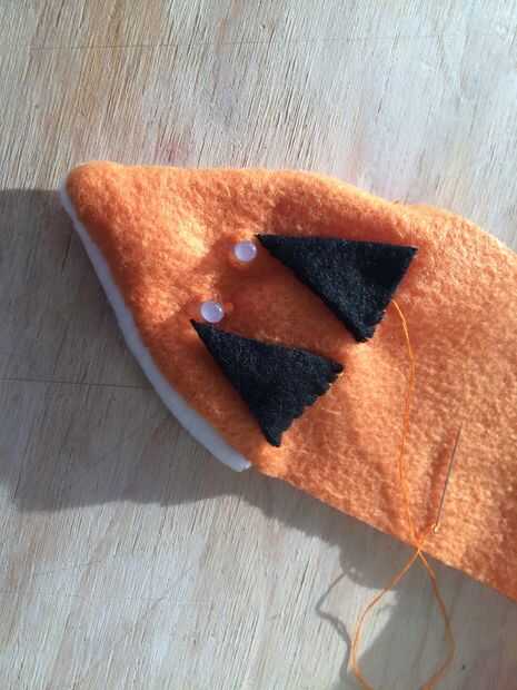Coserlas en los oídos - de una posición final aseado hacia abajo y coser, luego doblar para arriba otra vez.