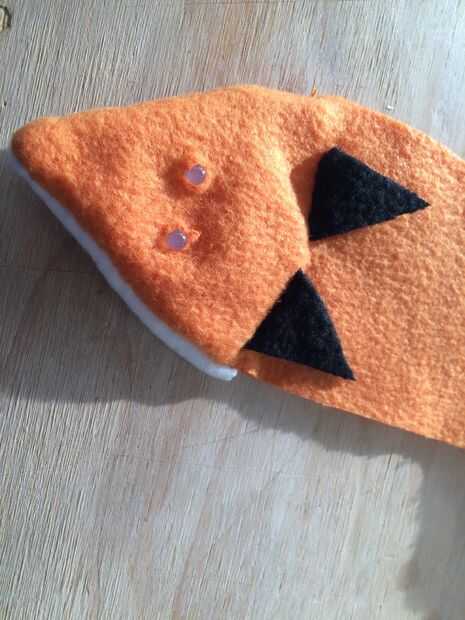 Colóquese la bufanda alrededor de su cuello y unir el broche de presión o velcro, ver los ojos de luz! Si usted está haciendo esto como parte de una clase, cada criatura puede activar otro fijando cada cabeza a la cola de otro. Hacer que una luz cadena animal.