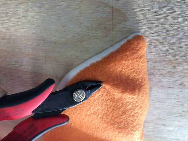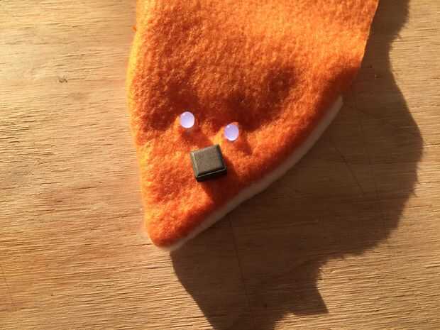 Coloque el circuito de hocico en el bolsillo con los LEDs hacia la capa superior de la bufanda.